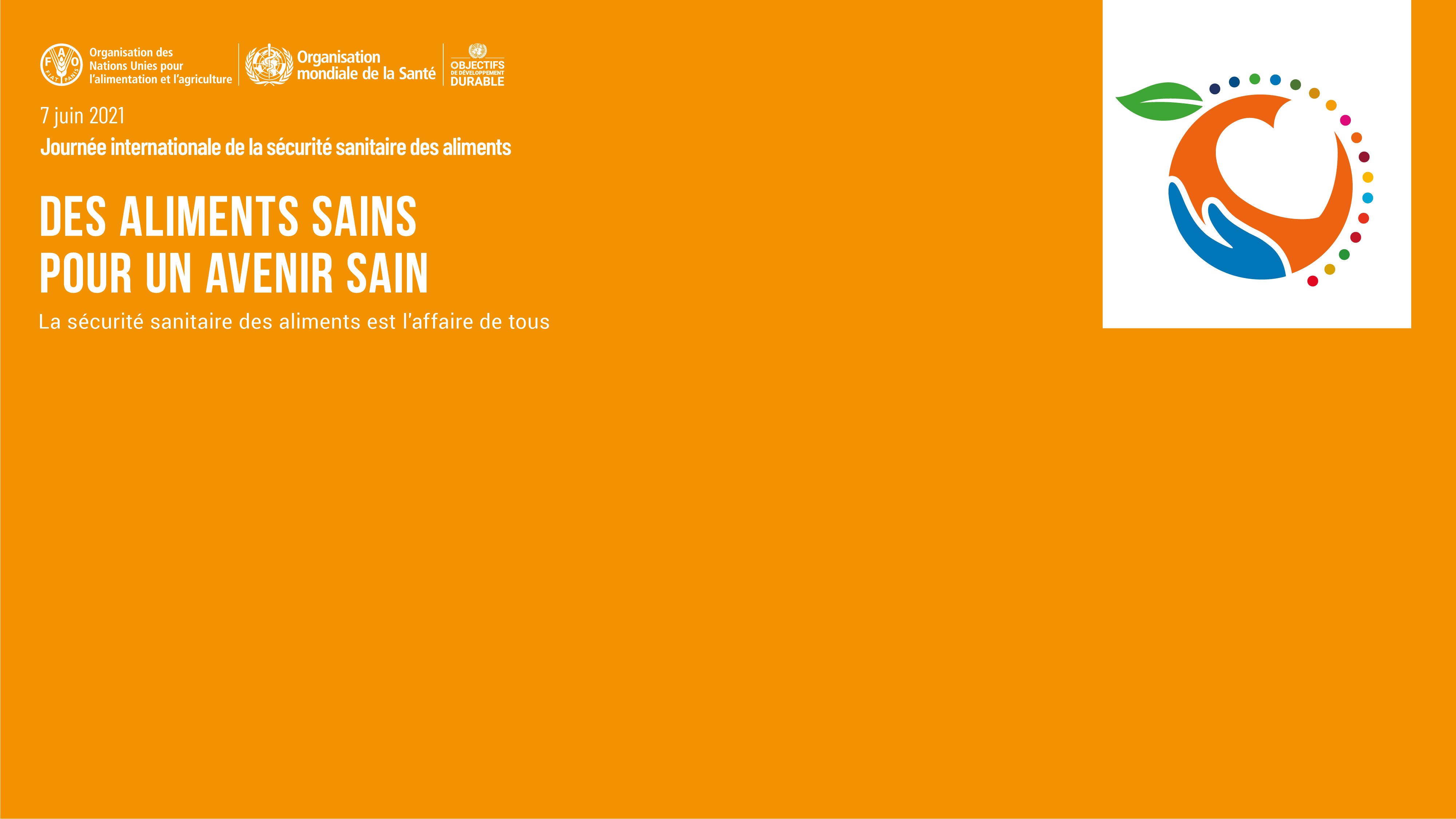 La sécurité sanitaire des aliments relève de la responsabilité commune des autorités nationales, des producteurs et des consommateurs. Chacun a un rôle à jouer, de la ferme à l’assiette, pour garantir que les aliments que nous consommons sont salubres et favorables à la santé. Par le biais de la Journée internationale de la sécurité sanitaire des aliments, l’OMS s’efforce de garantir l’intégration de la sécurité sanitaire des aliments dans l’action des pouvoirs publics et de réduire la charge des maladies d’origine alimentaire au niveau mondial. La sécurité sanitaire des aliments est l’affaire de tous.