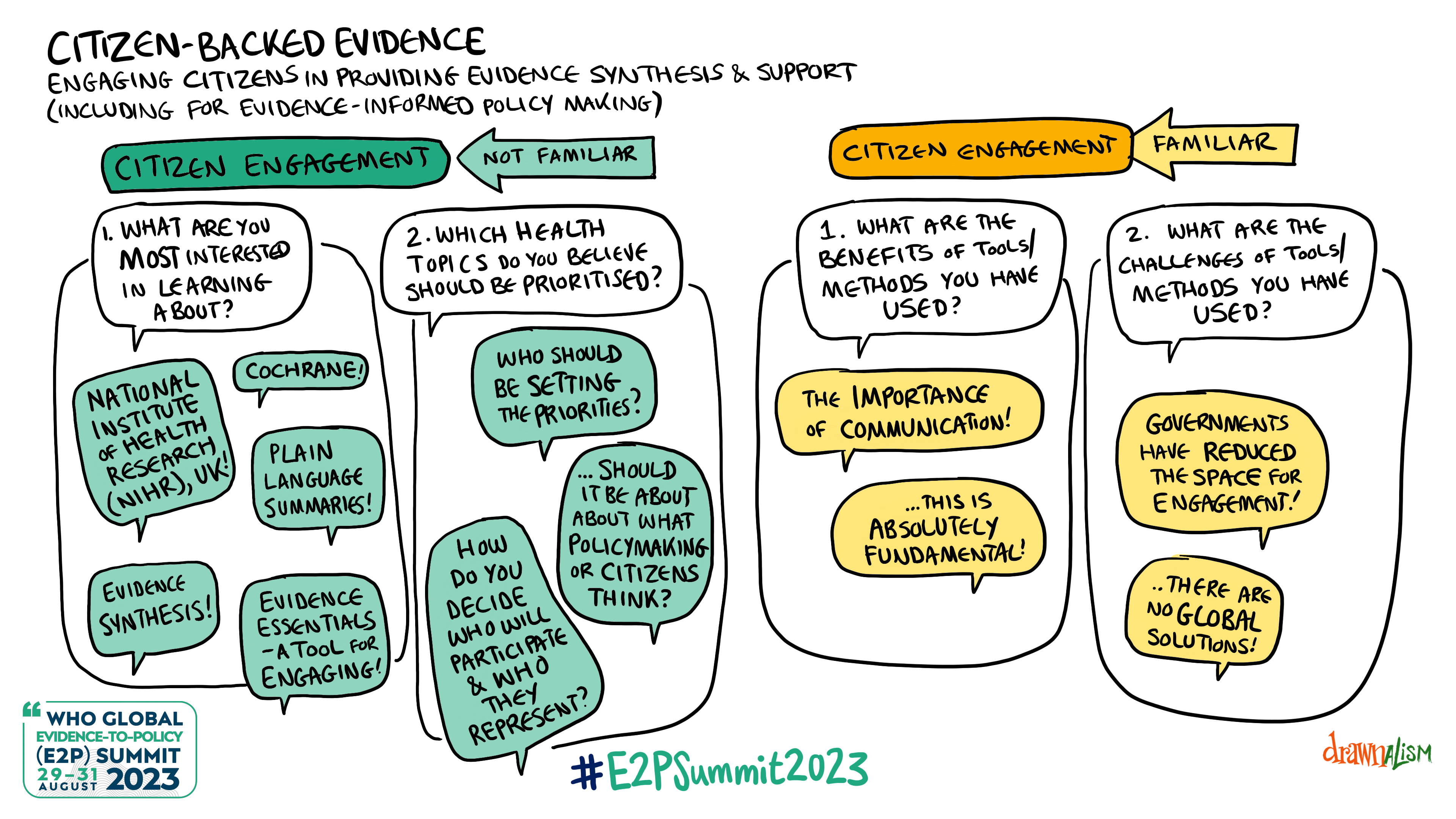 The WHO Global E2P Summit 2023 brought together researchers and policy-makers from various WHO regions with international institutions, Member States, universities, research institutes and partners. The aim was to take stock of progress on the Call for Action from the WHO E2P Summit 2021, identify common challenges, share innovations and lessons learned, and provide recommendations for supporting evidence-informed decision-making to spur progress towards the Sustainable Development Goals and Triple Billion targets.