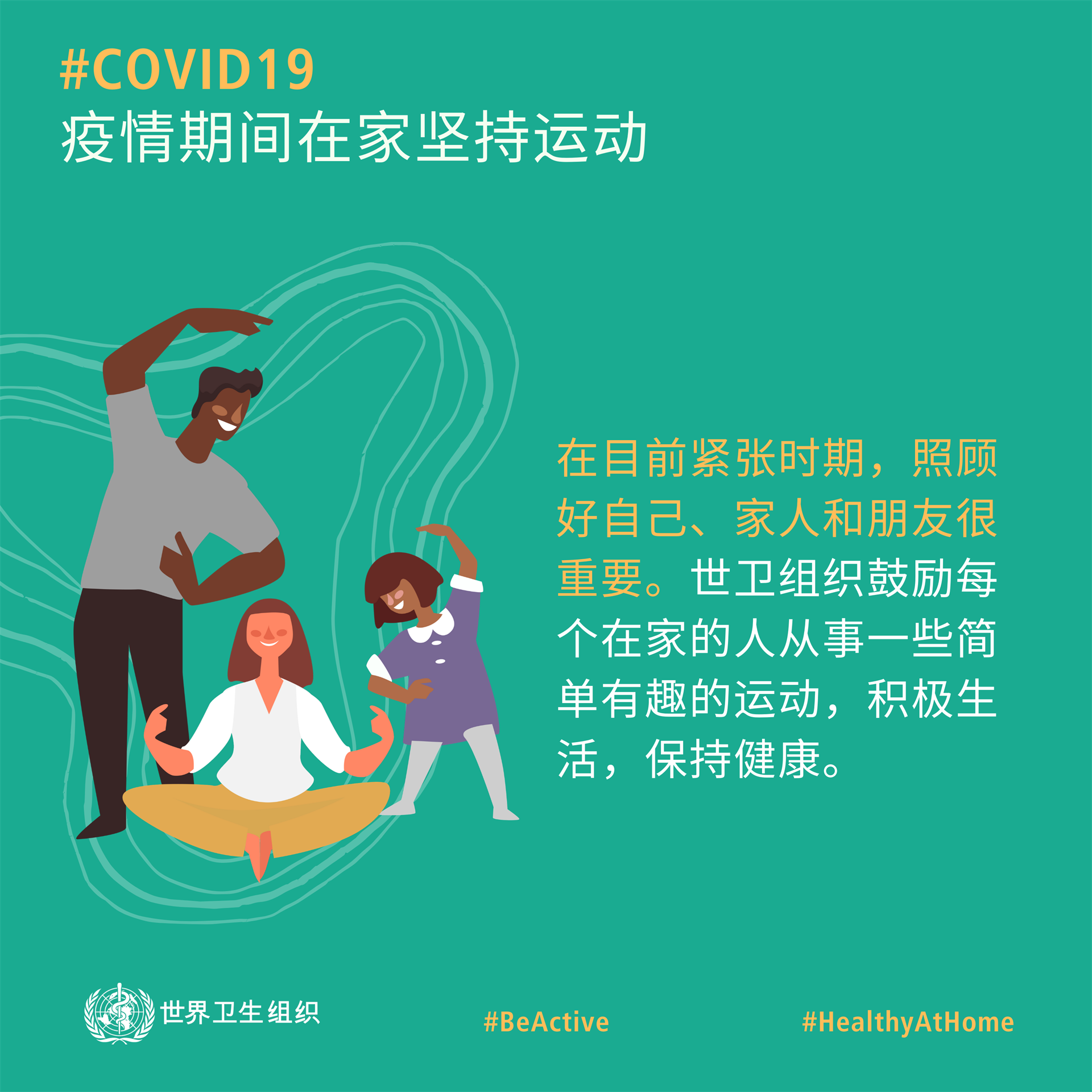 但是,在这种时候,对于各年龄段不同能力的人来说,尽可能坚持活动非常重要。世卫组织的“坚持活动”运动旨在帮助你做到这一点,同时获得一些乐趣。